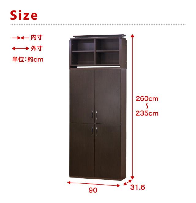 | 約幅90x奥行31.6x高さ最低235cm〜最高260cm |