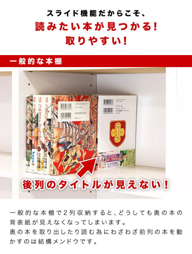スライド本棚 奥深 スライド本棚 ダブル スライド本棚 幅90 スライド本棚 ロータイプ スライド本棚ワイド 連結 本棚 スライド 重ね 本棚 スライドダブル 本棚 スライド式 大容量 コミック 子供 書斎 漫画 マンガ まんが コミック マンガ本 まんが本 文庫 文庫本 文庫判 文庫版 ハガキサイズ はがきサイズ 葉書サイズ 葉書きサイズ 新書 新書本 新書判 新書版 少年漫画 少年マンガ 少年まんが 少年コミック 少女漫画 少女マンガ 少女まんが 少女コミック B6 B6本 B6サイズ B6判 B6版 青年漫画 青年マンガ 青年まんが 青年コミック 女性漫画 女性マンガ 女性まんが 女性コミック ワイド判 ワイド版 四六判 四六版 四六サイズ 四六本 46判 46版 46サイズ 46本 単行本 A5 A5本 A5サイズ A5判 A5版 完全判 完全版 完全 豪華判 豪華版 新装判 新装版 菊判 菊版 菊サイズ 菊本 コンビニコミック ハードカバー 愛蔵判 愛蔵版 記念判 記念版 通常判 通常版 復刻判 復刻版 函装判 函装版