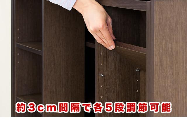 | 商品仕様 | 材質:プリント紙化粧繊維板 中央は固定棚、可動棚大4枚(本体)・小4枚(スライド棚) ※以下付属品は、2台購入時に必要となるパーツです。 連結時にご使用ください。 (連結用ピンx1 連結金具(転倒防止用金具)x1) |