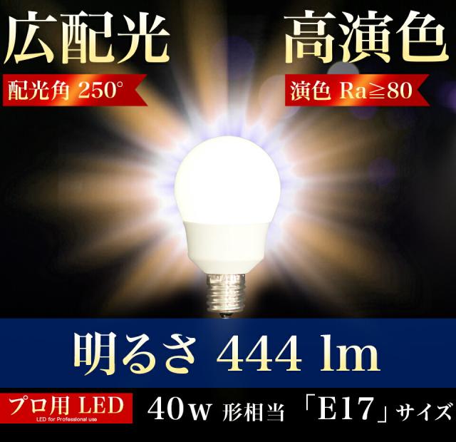 8本セット 電球 E17 LED電球 LEDライト 40w形 プロ用 明るい 綺麗 キレイ 明るさ 天井まで 部屋全体 明るく 2700k 電球色 広配光 高演色 照明 おしゃれ メイク ライト 虫が来ない 低UV 低紫外線 料理 撮影用 省エネ エコ 長寿命