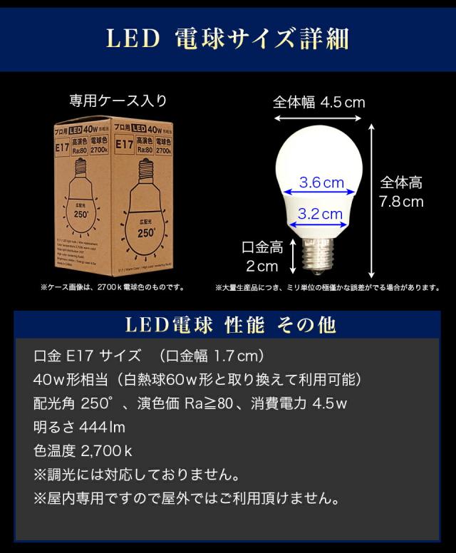 電球 E17 LED電球 LEDライト 40w形 プロ用 明るい 綺麗