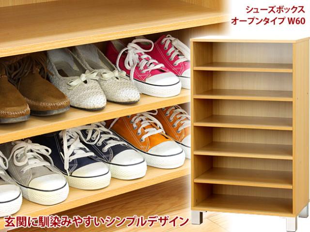オープン シューズボックス 幅60cm 奥行き36cm 脚付き スリム シューズラック シンプル 靴箱 くつ箱 クツ箱 下駄箱 ゲタ箱 スリッパラック スリッパ棚 独り暮らし 一人暮らし 玄関収納 エントランス オフィス 木製 北欧 送料無料 送料込み 家族用シューズラック幅60cmでファミリー向けサイズコンパクトな靴箱で最大18足可動の棚板は取り外し可能でブーツなども収納できる独り暮らしのワンルームマンションにも最適2段重ねて使えば大容量の下駄箱木目が美しいナチュラル色送料無料