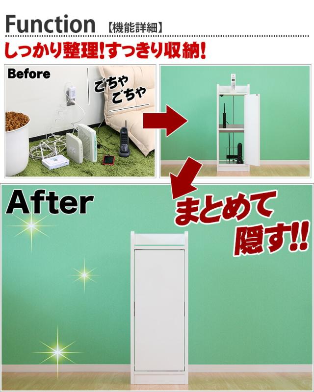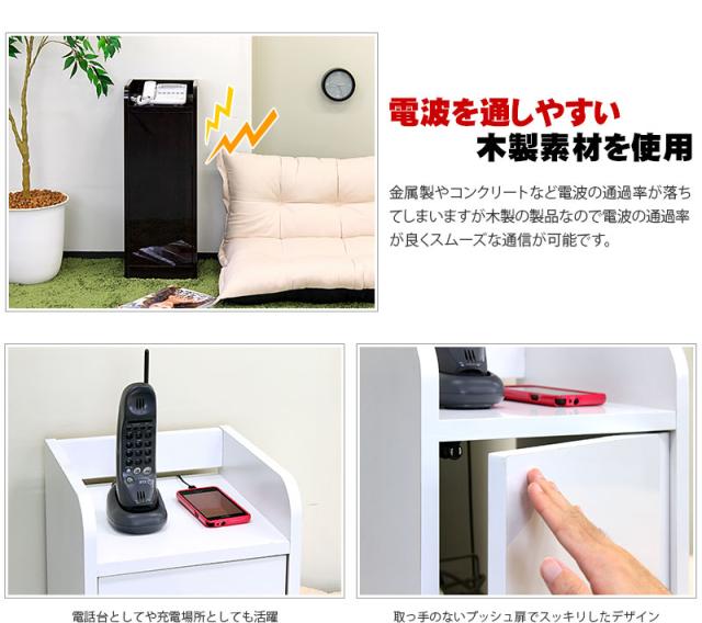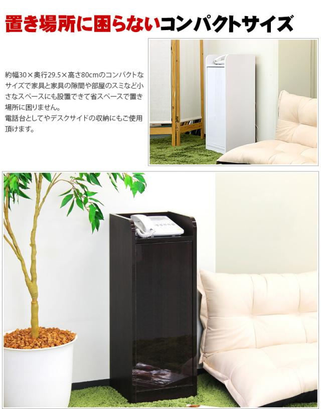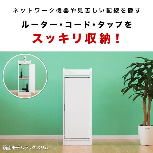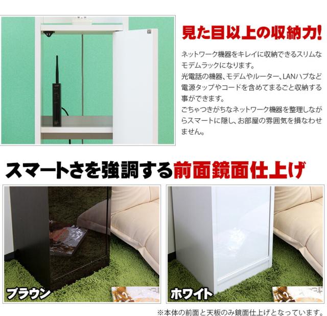 鏡面ルーター収納 幅30cm ホワイト/ブラウン 木製 超スリム 電話台 wifi ラック 収納 コンパクトで省スペースなモデム収納 コードを通しやすくコード巻き取り金具付き 電源タップなど配線を隠す扉付きラック 玄関の小物やカギ置きにも便利 鏡面加工の木目が美しい 送料無料