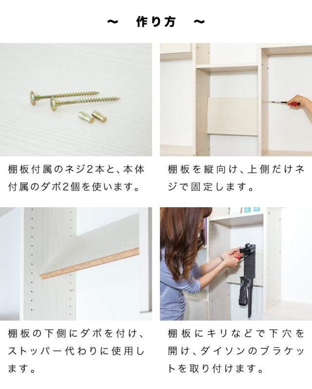 | 材質:プリント紙化粧繊維板 連結ネジ8個付き 棚ダボ8個付き |