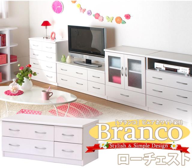 ピュアホワイト [Branco(ブランコ)] 白い家具 白い棚 白い収納 白で揃えるフェミニンなお部屋 お姫様家具 キュート 可愛いホワイトの木製ローチェスト 2段 幅90 白 リビング用 テレビ台 コンパクト ローボード 32型 ロータイプ
