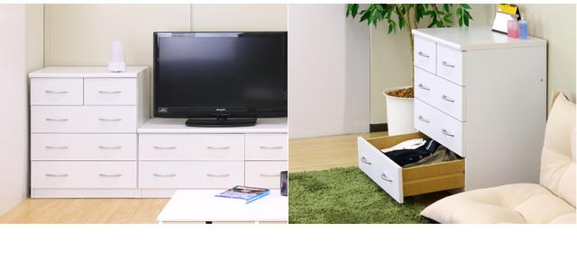 シンプルなデザインだからどのテイストのインテリアにも合う白のたんす テレビ台TV台シンプルプリンター台サイドチェスト衣類収納としても使える木製タンス キャビネット引き出しローボード収納ラック