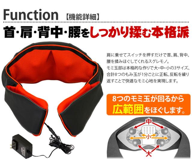 首肩マッサージ器も〜む 首や肩 腰のマッサージに 大小もみ玉が全部で8個 腰痛 実用的 肩こりマッサージ器もーむ 肩に掛けるだけで強さを調整できる 肩凝り用ネックマッサー タイマー付きで安心 送料無料 父の日 母の日 敬老の日 プレゼント 実用的 ギフト 健康