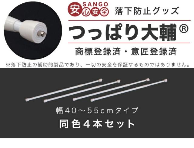 突っ張り棒 強力 つっぱり大輔 同色4本セット 40cm 45cm 50cm 55cm つっぱり棒 伸縮 落下防止 本棚 カーテン ひっかけ 汎用 地震対策 DIY 目隠し 棚 ポール 落ちない ズレない 固定 簡単 軽量 伸びる 無段階 調節 山五 つっぱり さんご 大介 大助 つっぱりだいすけ
