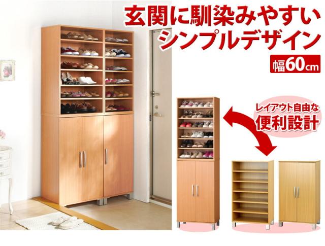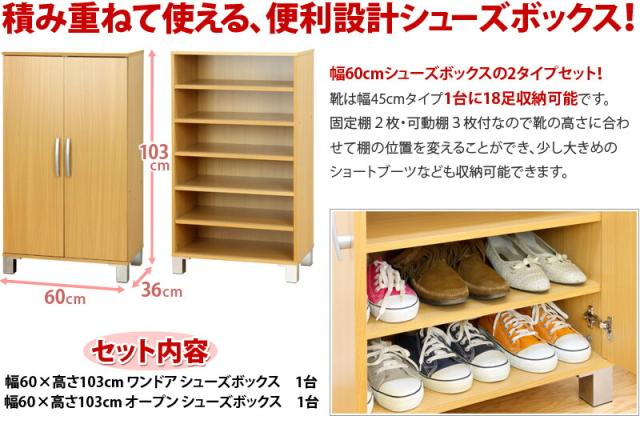 シューズボックス 幅60cm 2点セットナチュラル 木製 シューズラック 靴箱 くつ箱 クツ箱 下駄箱 リビング すき間収納 隙間収納 扉収納 収納ボックス 玄関収納 /薄型/通販/送料無料 【送料込み】 新生活 施主支給