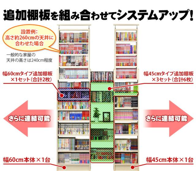 奥深つっぱり耐震書棚 棚板パーツ2枚組 幅45cm×奥行26cm用 (棚板実寸 幅40.5cm×奥行26cm) 突っ張り 本棚 転倒防止 天井突っ張り 壁面収納 ホワイトオーク ブラウン 耐震本棚 オープンラック 書庫 コミック 耐震 地震対策 防災 送料無料 送料込み 新生活 ダイソンスタンド