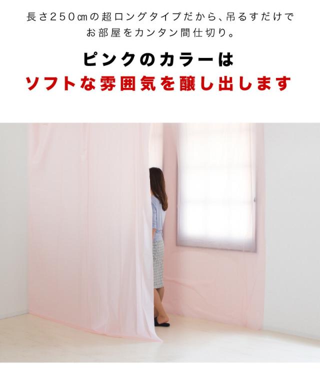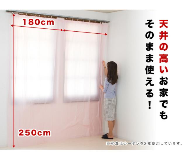 長さ250cmのロングカーテンで、自由にカットできるので、天井の高い250cmや240cmの部屋でも、一般的な230cmの部屋でも、天井の低い220cmや210cmでも使えます。