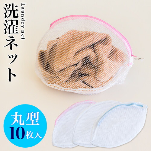 洗濯ネット 10枚入 ランドリーネット 丸型 立体 35cm 白 ホワイト メッシュ ファスナー付き ブラジャー 下着 シャツ バスタオル 主婦 女性 景品