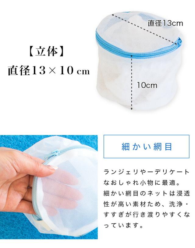 13×10cmの立体洗濯ネット。細かい網目のネットですので、糸くずや綿ほこりの等の侵入を防ぎます。ネットの縫い目をバイアステープでおさえているので、ブラジャーの生地をいためません。ブラジャー専用にとどまらず、ランジェリやーデリケートなおしゃれ小物のお洗濯に最適。