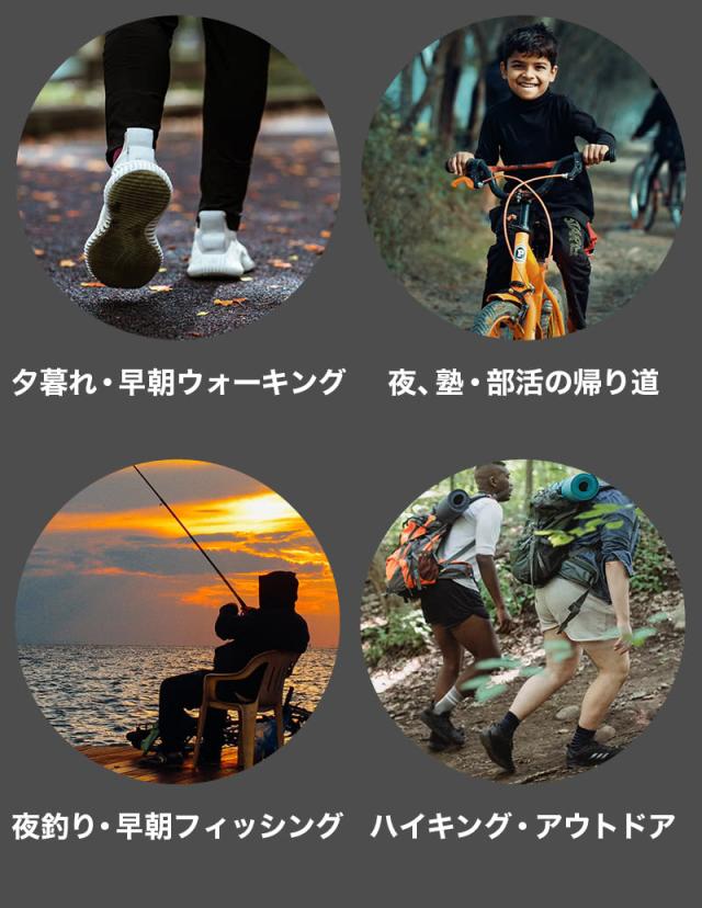 - 最近ウォーキングを始め夜道が怖いなと思いながら歩いてましたが、この商品が来てからは小さなバッグには携帯を入れて音楽を聴きながら快適に歩かせてもらってます。