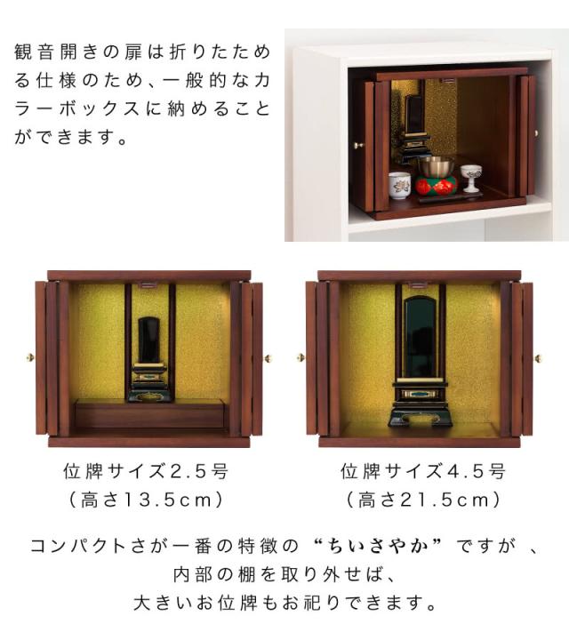 仏壇 ミニ 仏壇 モダン ミニ 仏壇 小さい 小型仏壇 須弥壇 観音開き 天然木 本棚に入る コンパクト カラーボックス 幅30 高さ26 位牌 4.5号 扉付き 折りたたみ