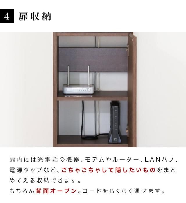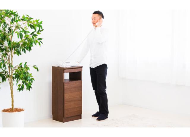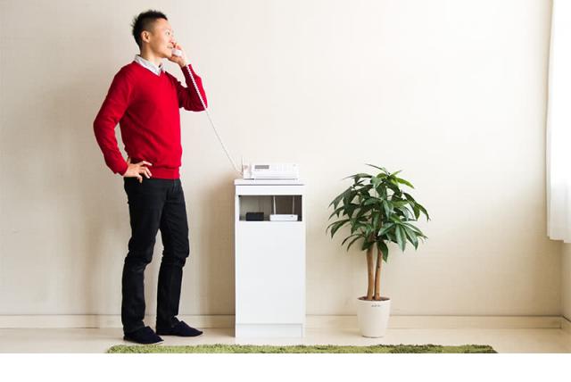 上部に電話(FAX)、引き出しに携帯電話、中ほどの空間にタブレット、扉の中にルーターなどを収納し、配線がすべて後ろ側で完結するため、非常に見栄えが良い。満足満足。