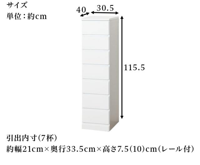 ランドリーチェスト 約 幅30cm 7段 白 おしゃれ 引き出し 靴下 インナー タオル収納 脱衣室 すきま収納 隙間 1人暮らし 隙間収納 すき間 ランドリーラック 洗面所収納 引き出し スリム 洗面所 送料無料 新生活 組立不要