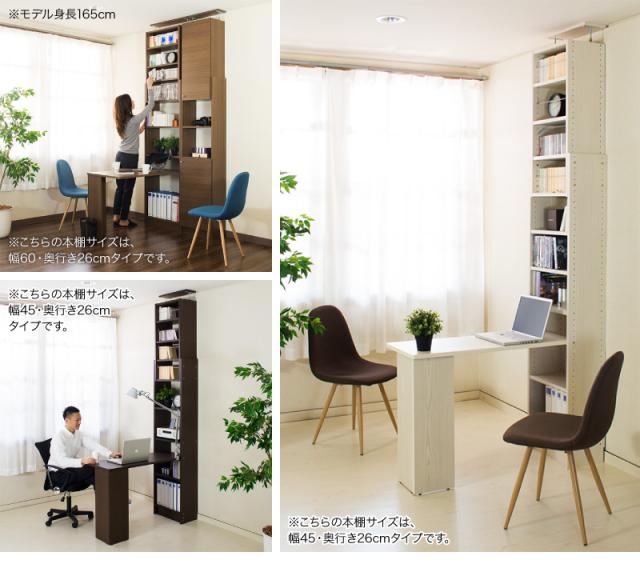 『つっぱり耐震本棚(幅45cm×奥行き19cm)+机』のセット商品です。