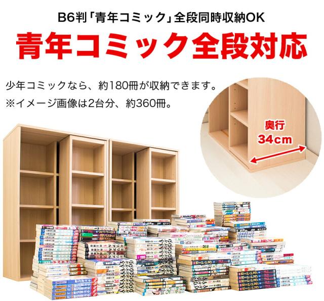 棚板の奥行き内寸が約15cm仕様、DVDケースや大判コミック等、現在主流のメディアにしっかり対応。
