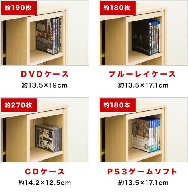 1台の全段に詰めると、コミック本なら 約180冊!DVDなら190本!ブルーレイ・ゲームソフトなら 約180本!CDなら 約270枚!増えるに増えた大量のDVD・コミックを効率良く収納できます!