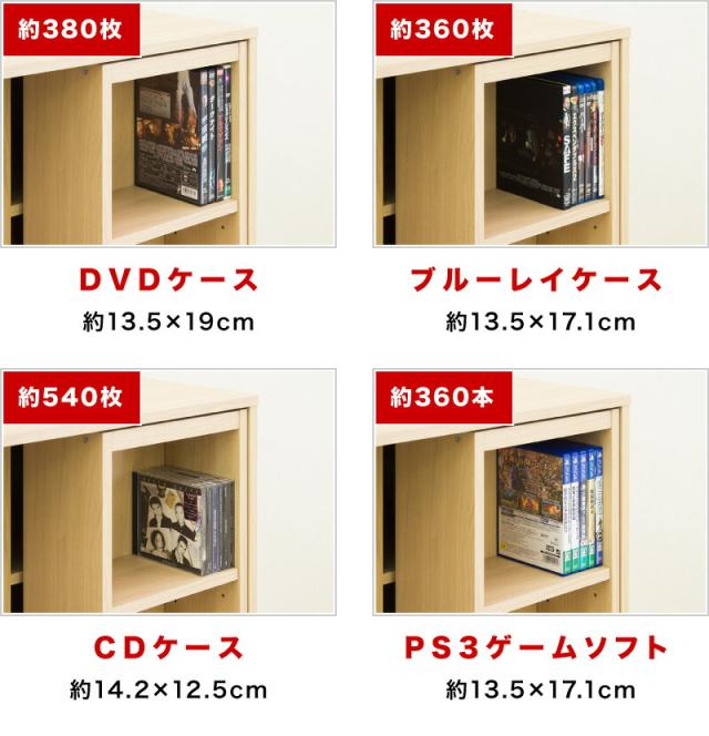 2台の全段に詰めると、コミック本なら 約360冊!DVDなら380本!ブルーレイ・ゲームソフトなら 約360本!CDなら 約540枚!増えるに増えた大量のDVD・コミックを効率良く収納できます!