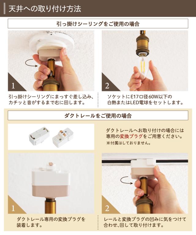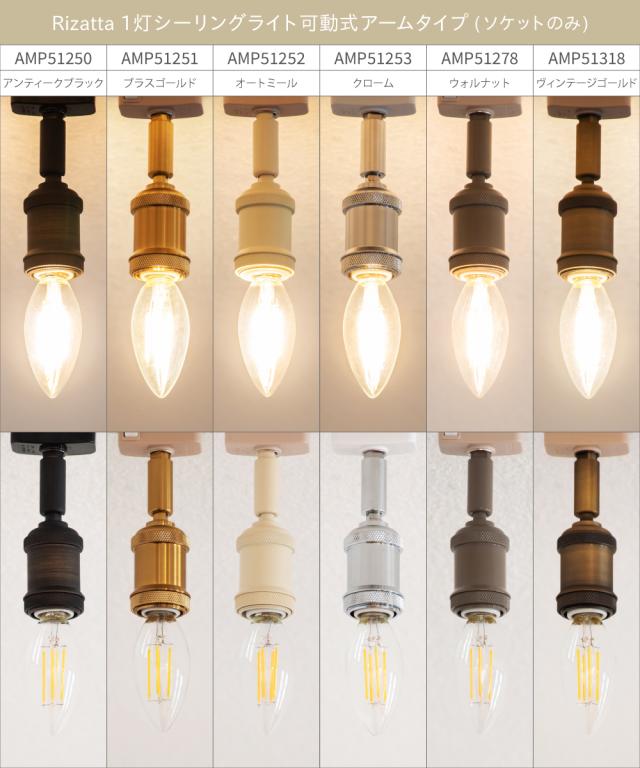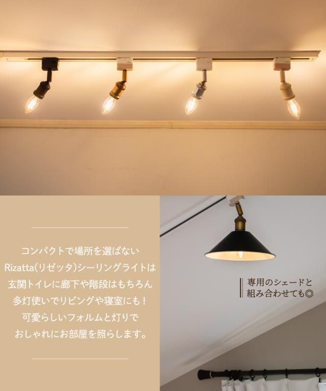【Ampoule】 シーリングライト 照明 おしゃれ ソケット E17 電球 ダクトレール ライティングレール 1灯 ダイニング カフェ レトロ アンティーク 照明器具 間接照明 ゴールド 真鍮 ブラック クローム ベージュ ブラウン LED スポットライト Rizatta リゼッタ 1C 可動