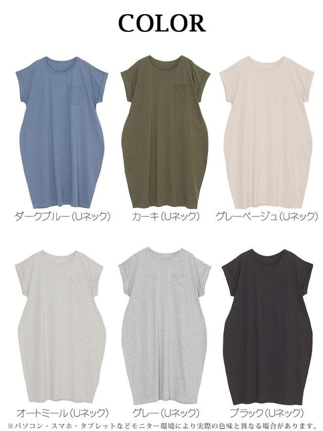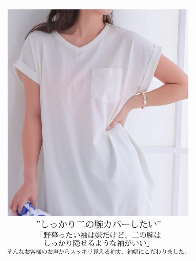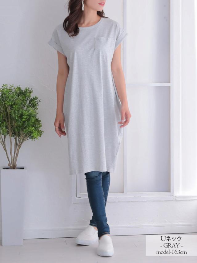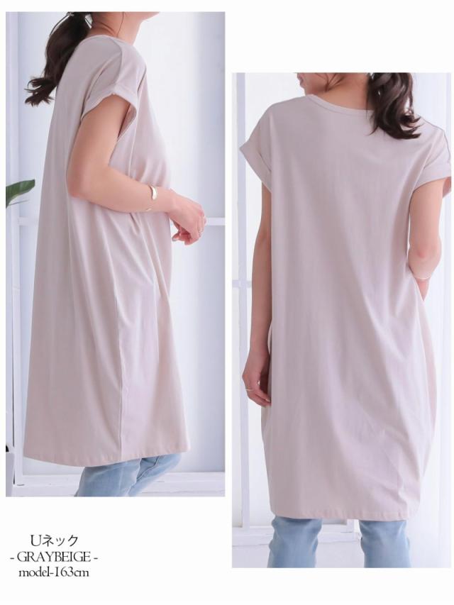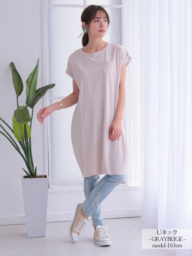 ☆首や袖周りも広めで抜け感を出してくれるシンプルなUネックデザインTシャツは着回ししやすいチュニック♪