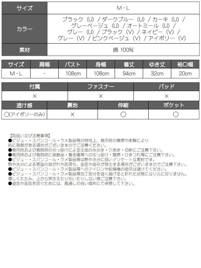 ブラック(U)/ダークブルー(U)/カーキ(U)/グレーベージュ(U)/オートミール(U)/グレー(U)/ブラック(V)/ネイビー(V)/グレー(V)/ピンクベージュ(V)/アイボリー(V)///