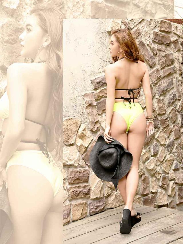 ☆ブラジリアン水着は、取り外し可能なパッド付きだから、自分好みのパッドに付け替えることもできちゃう三角みずぎ♪