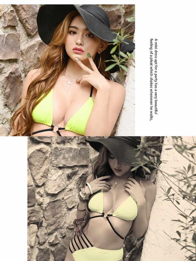 ☆胸元のリングと派手カワでひと目で印象に残るネオンカラーとアニマル柄水着は友達とお揃いにしたらインスタ映え間違いなしの蛍光色水着♪