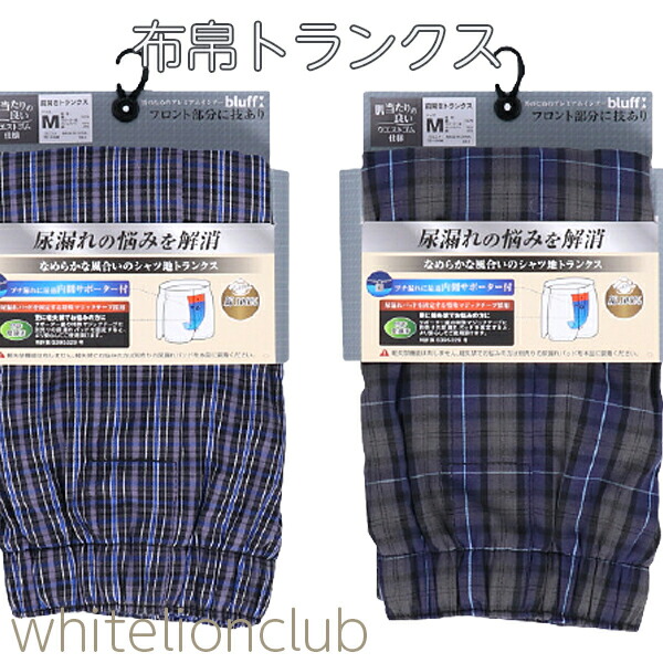 ブラフ サポーター付き 布帛トランクス ニットトランクス 尿漏れパンツ M/L/LL | 失禁パンツ 下着 肌着 尿モレ 軽失禁 ちょい漏れ 失禁トランクス メンズ bluff