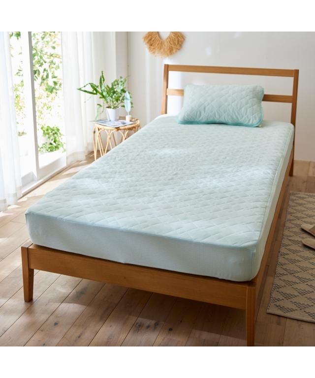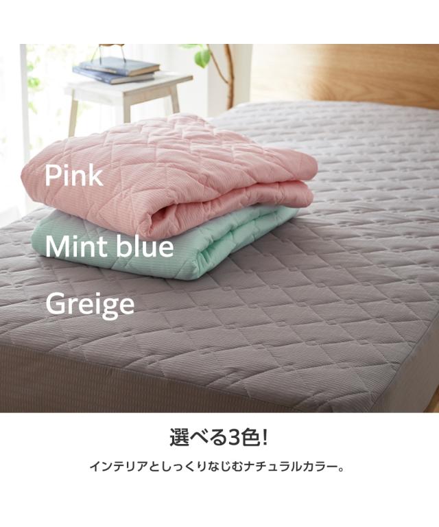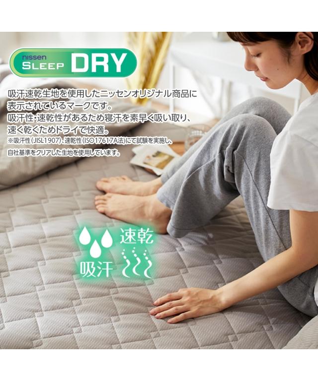 敷きパッド 吸汗速乾 ドライニット ボックスシーツ一体型 夏 グレージュ〜ミントブルー ダブル 敷パッド 寝装 寝具 ニッセン nissen