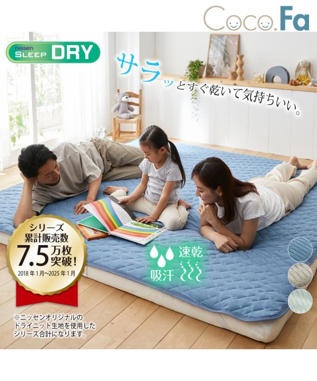 敷きパッド 吸汗速乾 ドライニット ファミリーサイズ 夏 グレージュ/ピンク/ミントブルー 5人用 280cm 敷パッド ニッセン nissen