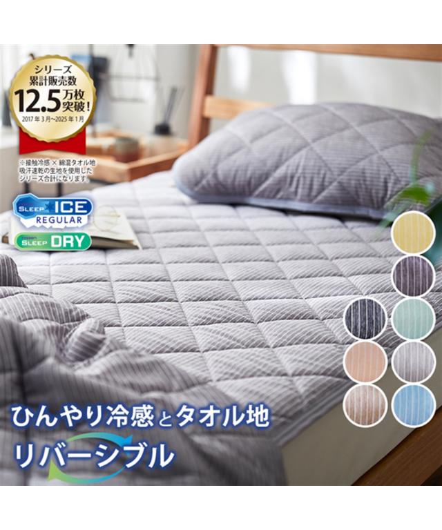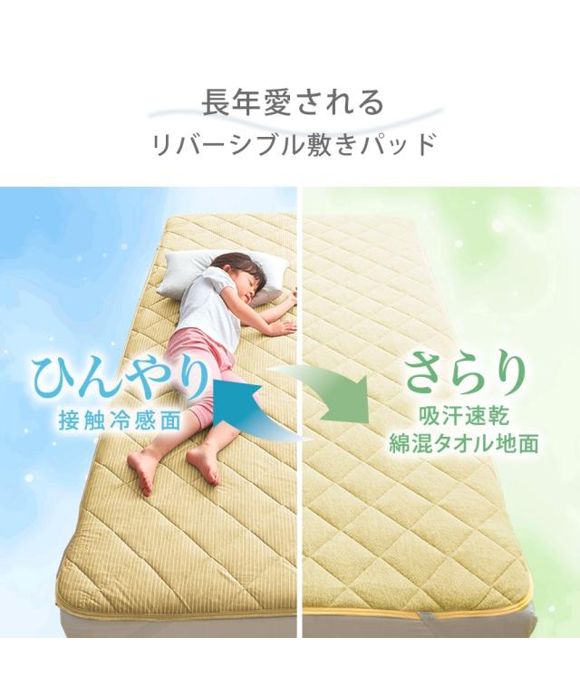 敷きパッド 接触冷感 綿混 タオル地 吸汗速乾 リバーシブル 夏 ダブル