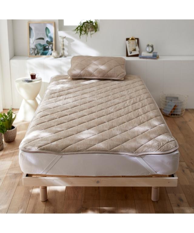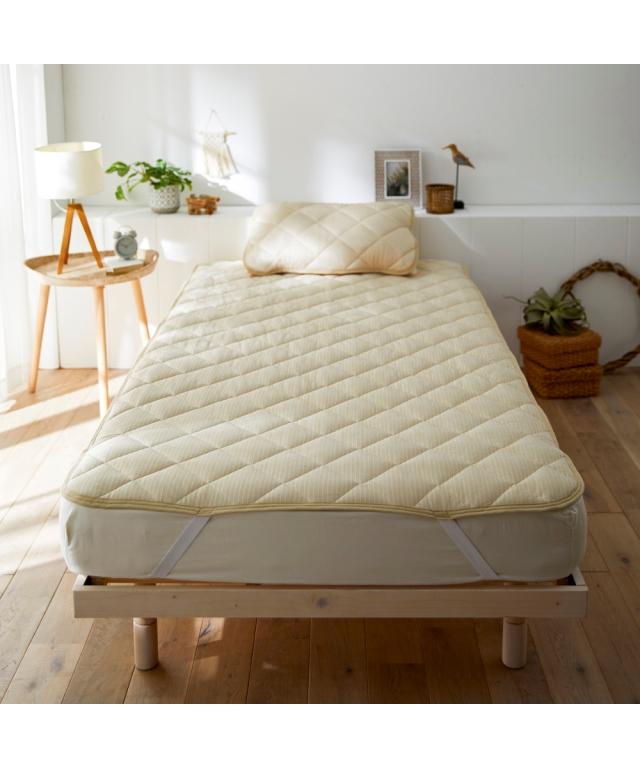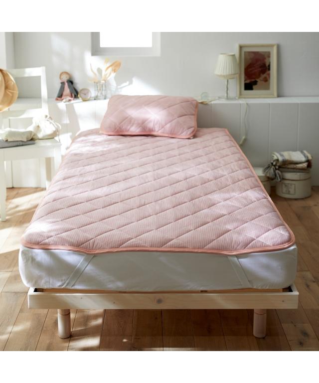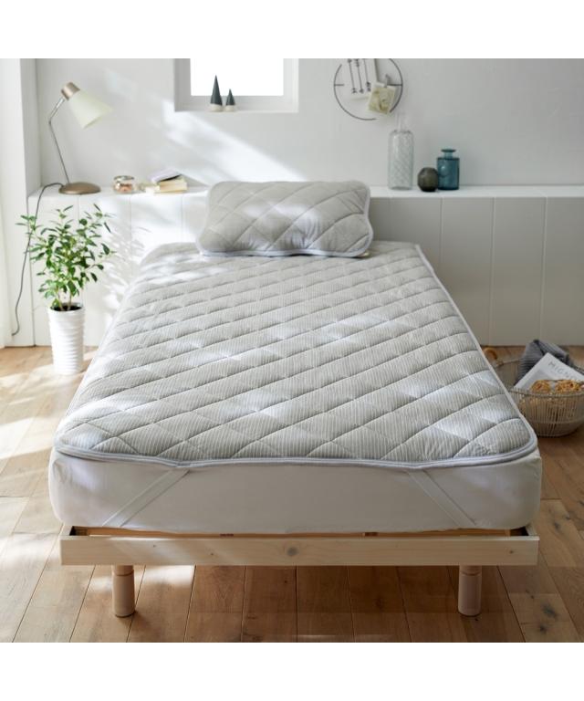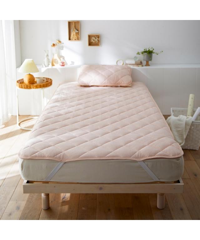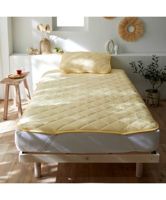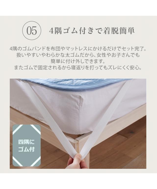 片面はひんやり冷感素材ともう片面は綿混タオル地素材を使用したリバーシブルタイプの敷きパッド。また今年は両面吸汗速乾機能をプラスしての登場です。1枚で2役のリバーシブルタイプの敷きパッドは春〜秋にかけてより快適に夜を過ごして頂けます。