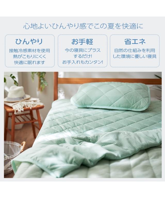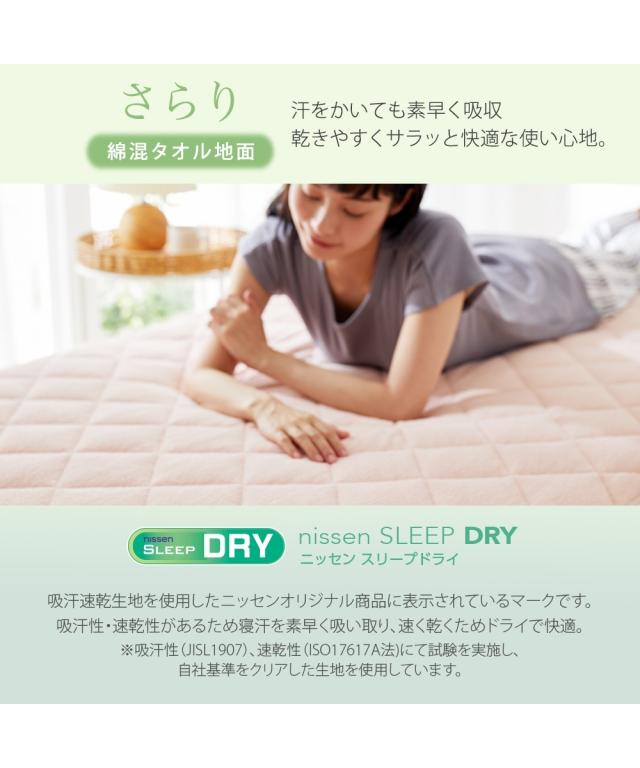 敷きパッド 接触冷感 綿混 タオル地 吸汗速乾 リバーシブル 夏 ダブル ニッセン nissen