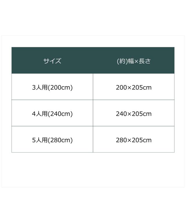 | ・ 5人用(280cm) はこちら ・ 3人用(200cm) はこちら |