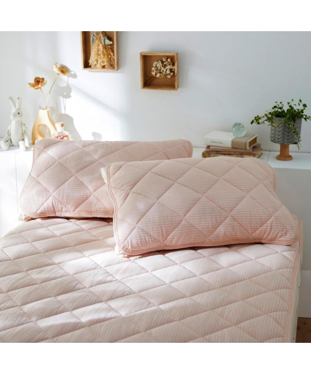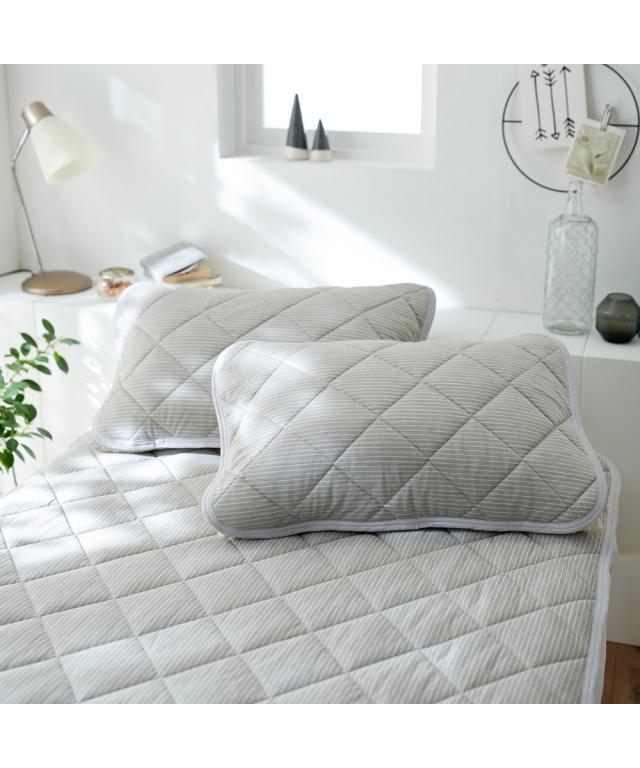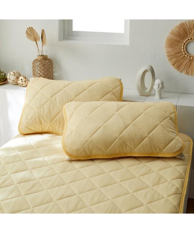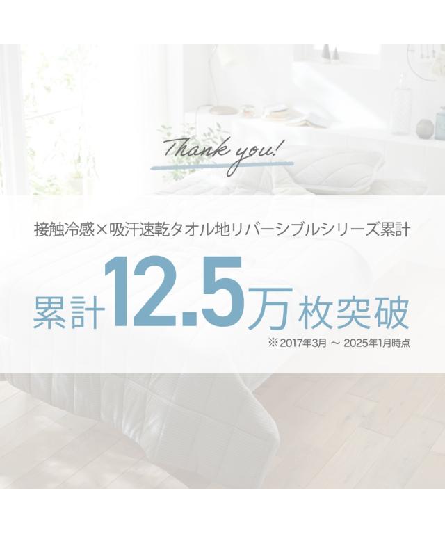 片面はひんやり冷感素材ともう片面は綿混タオル地素材を使用したリバーシブルタイプの枕パッド。また今年は両面吸汗速乾機能をプラスしての登場です。1枚で2役のリバーシブルタイプの枕パッドは春〜秋にかけてより快適に夜を過ごして頂けます。