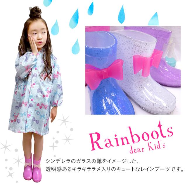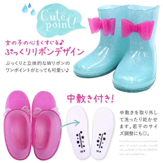 レインブーツ キッズ 女の子 長靴 子供用 リボン りぼん ラメ ジュニア 子供 子ども 小学生 レインシューズ 雨靴 雨 ロング 幅広 軽量 通学 通園 保育園 幼稚園 小学校 防水 撥水 シンデレラ 女子 女児 青 ピンク 白 黒 紫 13 14 15 16 17 18 19 20 21 cm RB-6711514