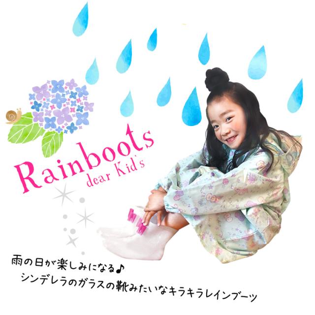 ■シンデレラのガラスの靴をイメージした、透明感あるキラキララメ入りのキュートなレインブーツです。