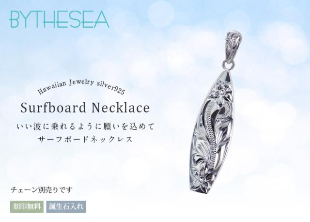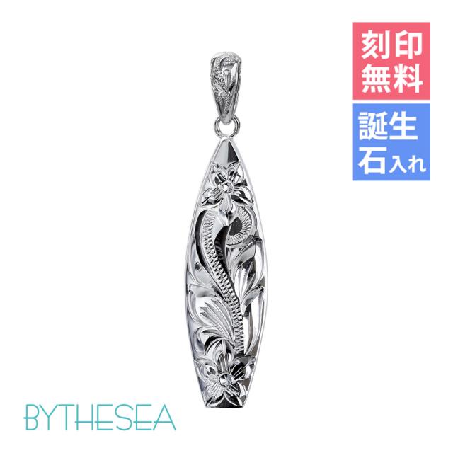 ハワイアンジュエリー シルバー ネックレス 刻印 無料 誕生石入れ可 サーフボード バチカン彫模様 シルバー925 チェーン別売 BY THE SEA バイザシー 彼女 妻 女性 レディース 誕生日 プレゼント ホワイトデー 卒業式 入学式 【品番:SP326】