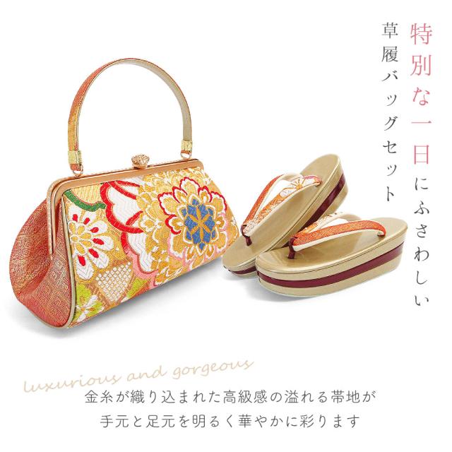 草履バッグセット 成人式 振袖 草履 バッグ セット バッグセット 草履バッグ 厚底草履 厚底 高級 正絹帯地 正絹 帯地 高級帯地 樹 礼装 袴 S M L LL サイズ フリーサイズ 小さいサイズ 大きいサイズ 金 赤 黒 前撮り 結婚式 披露宴 謝恩会 卒業式