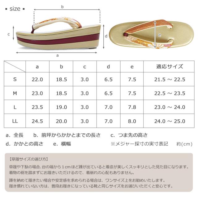 人気の厚底草履は異なるカラーを使用した豪華な3枚芯になっており、お着物姿をより一層美しく魅せます。