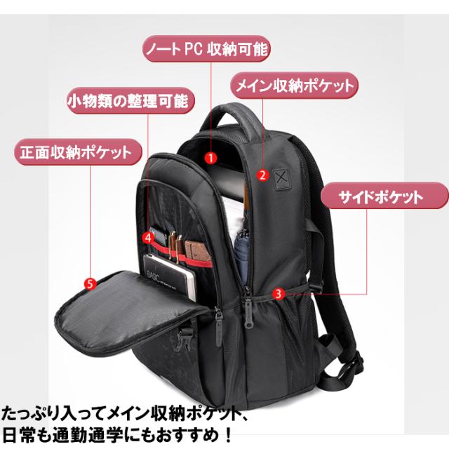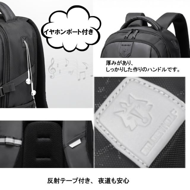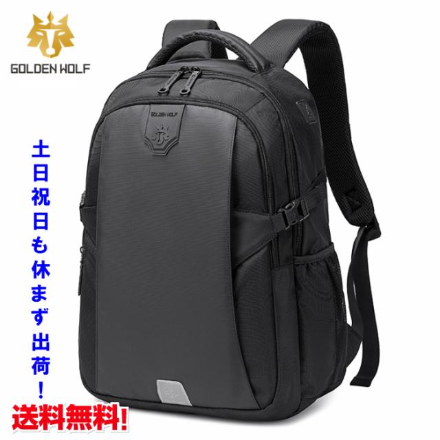 リュック メンズ リュックサック レディース 大容量 通勤 通学 リュック ビジネスリュック アウトドア 旅行 スポーツ 反射テープ付き ノートPC ビジネスカバン 仕事用 通勤用 男子 女子 黒 防災バッグ 送料無料 ママリュック GOLOEN WOLF GB00433