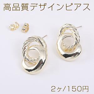 高品質デザインピアス 2連Cフープ 16×24mm ライトゴールド(2ヶ)