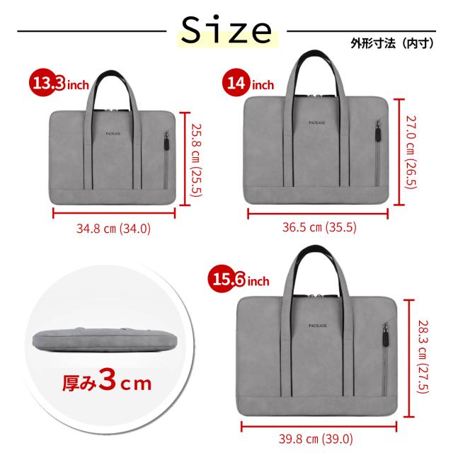 - 15.6インチ用を購入。本体はギリで入ったのですが、付属品が入らず別保管しました。でも、しっかりとしたクッション性があるのと持ち手が付いているので、とても便利です。