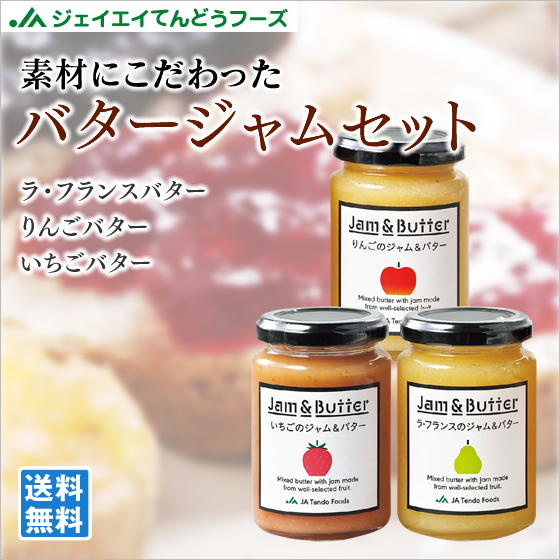 ジェイエイてんどうフーズ こだわりの バタージャム 3種セット 180g×各1個 (りんご・いちご・ラフランス)ギフト 産地直送