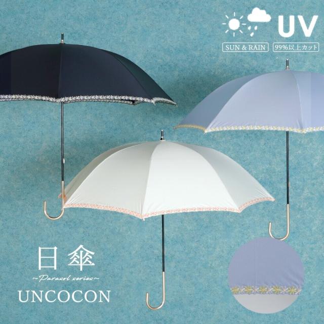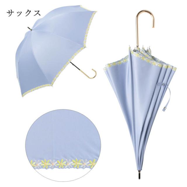 日傘 UVカット 長傘 刺繍 花柄 晴雨兼用