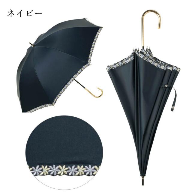 日傘 UVカット 紫外線遮蔽率99%以上 遮光率99%以上 刺繍 花柄 晴雨兼用 長傘 おしゃれ レディース