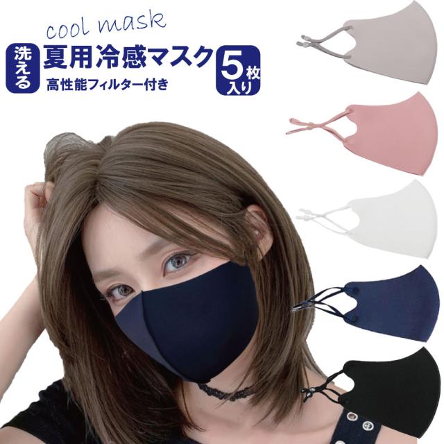 マスク 冷感 洗える 5枚入り 耳紐調整付き 送料無料 息がしやすい 血色マスク 個別包装 接触冷感 男女兼用 洗って使える おしゃれなマスク 不織布 二重マスク